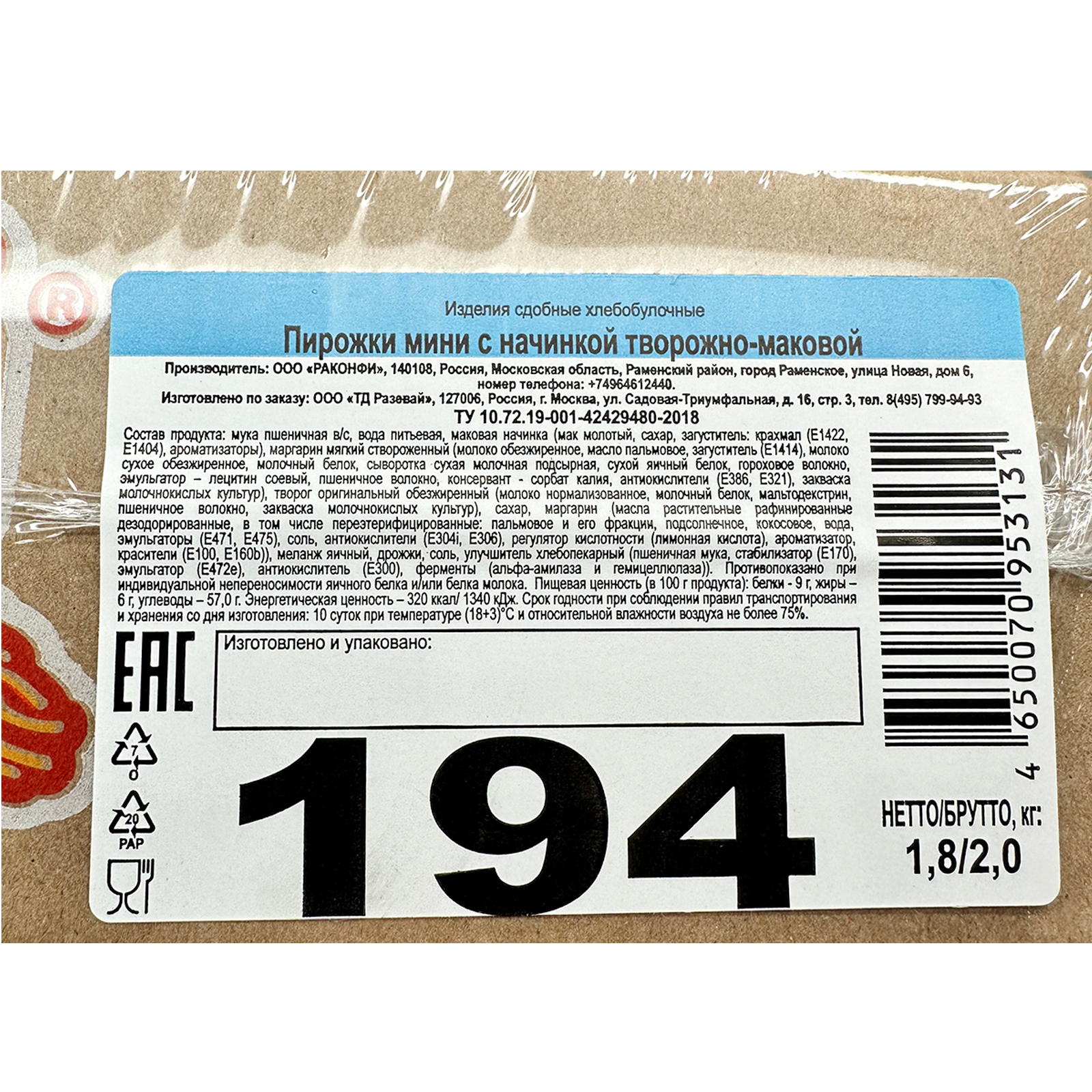 Пирожки мини мак/творог РАЗЕВАЙ сдоб тесто ВЕС