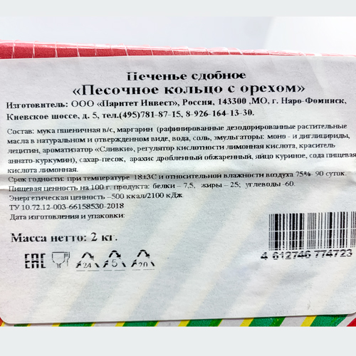 Песочное кольцо с орехом печенье сдобное вес /КОРОЛЬ СЛАДОСТЕЙ КФ/